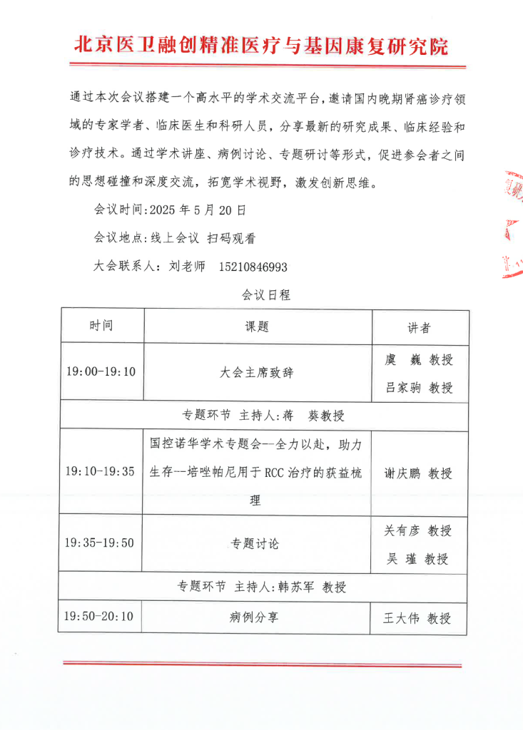邀请函 “肾势新生”晚期肾癌规范化诊疗菁英研讨会