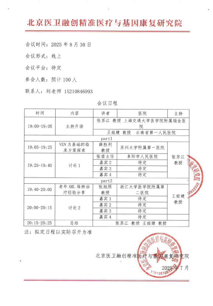 邀请函–AML个体化治疗前沿进展与特色方案云端研讨会