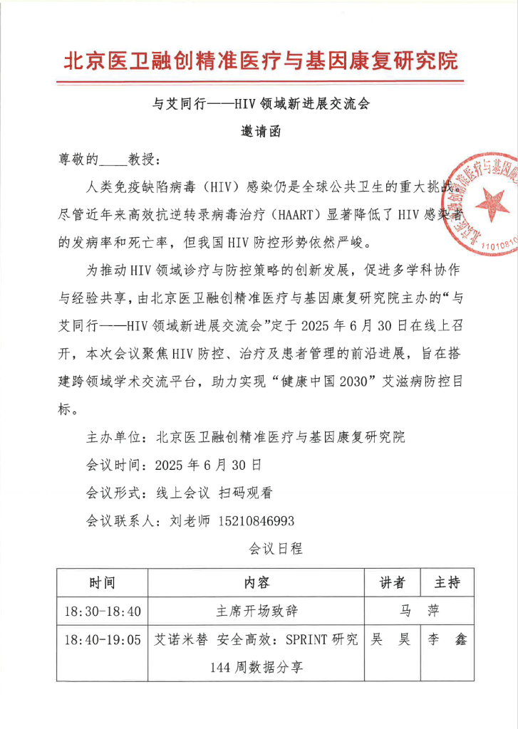 邀请函 与艾同行 与艾同行——HIV领域新进展交流会