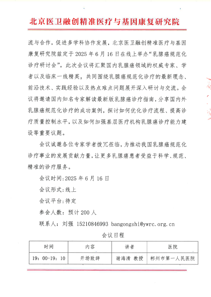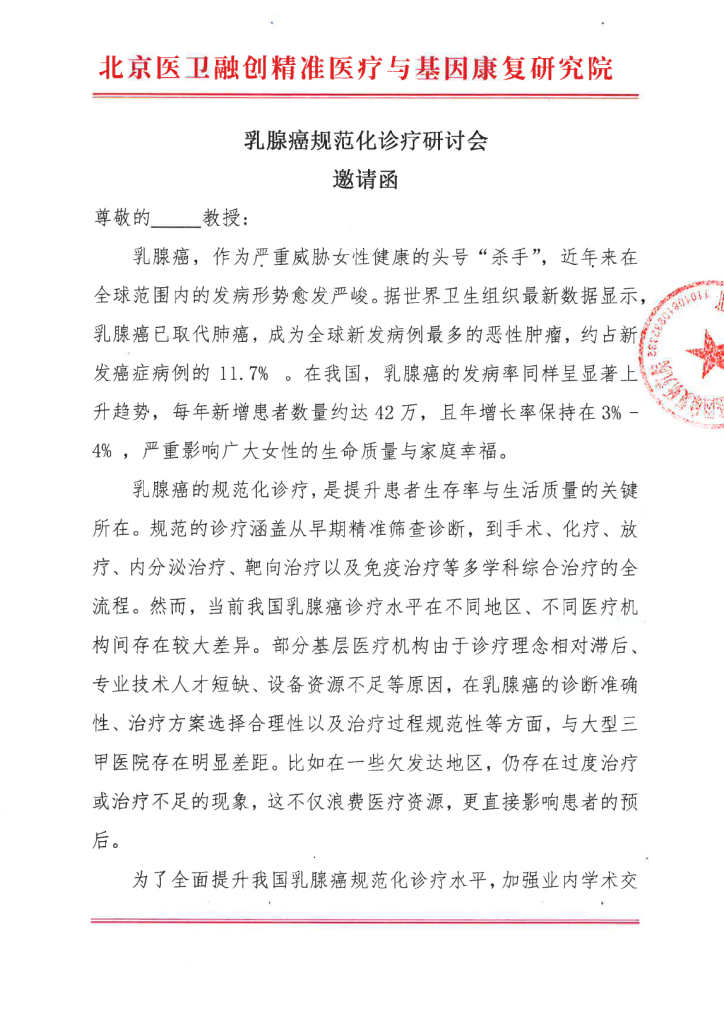 邀请函 乳腺癌规范化诊疗研讨会