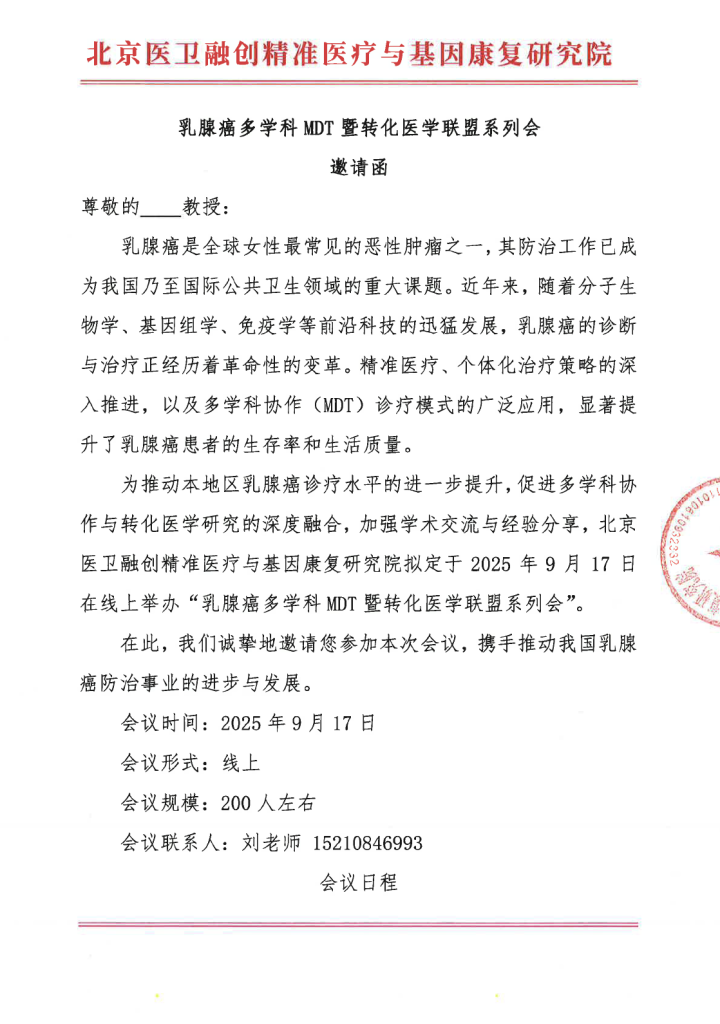邀请函 乳腺癌多学科MDT暨转化医学联盟系列会