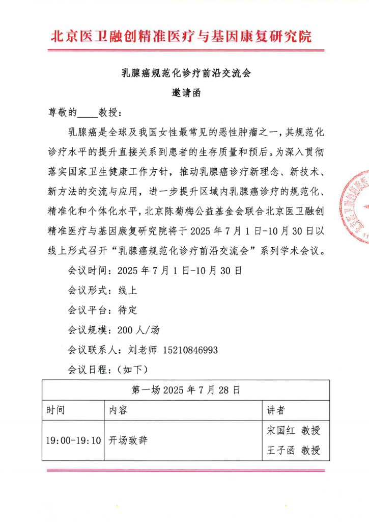 【医卫融创】邀请函 乳腺癌规范化诊疗前沿交流会