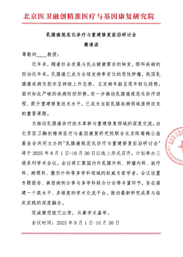 【医卫融创】邀请函 乳腺癌规范化诊疗与重建修复前沿研讨会