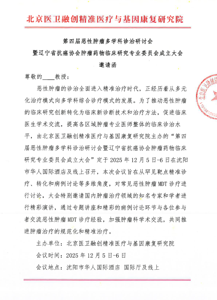 【医卫融创】邀请函 第四届恶性肿瘤多学科诊治研讨会