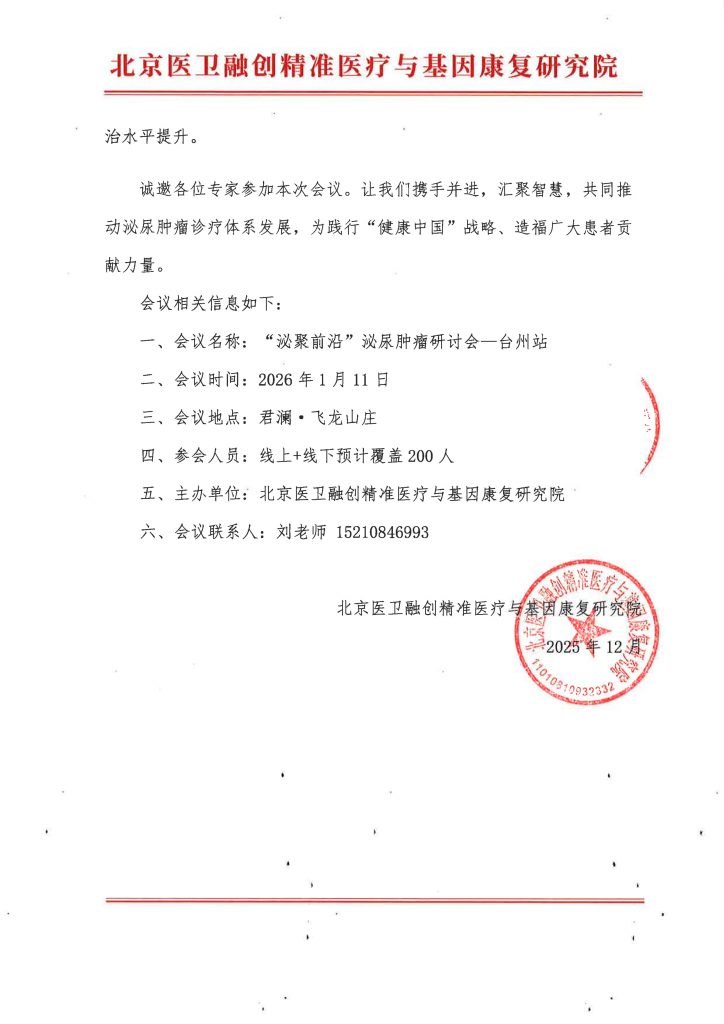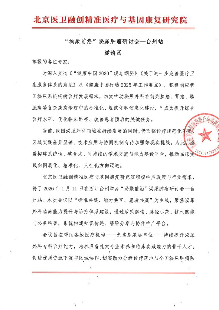 邀请函-“泌聚前沿”泌尿肿瘤研讨会—台州站