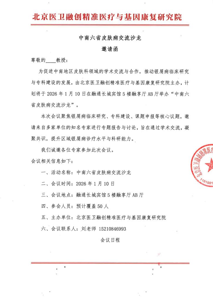 邀请函-中南六省皮肤病交流沙龙