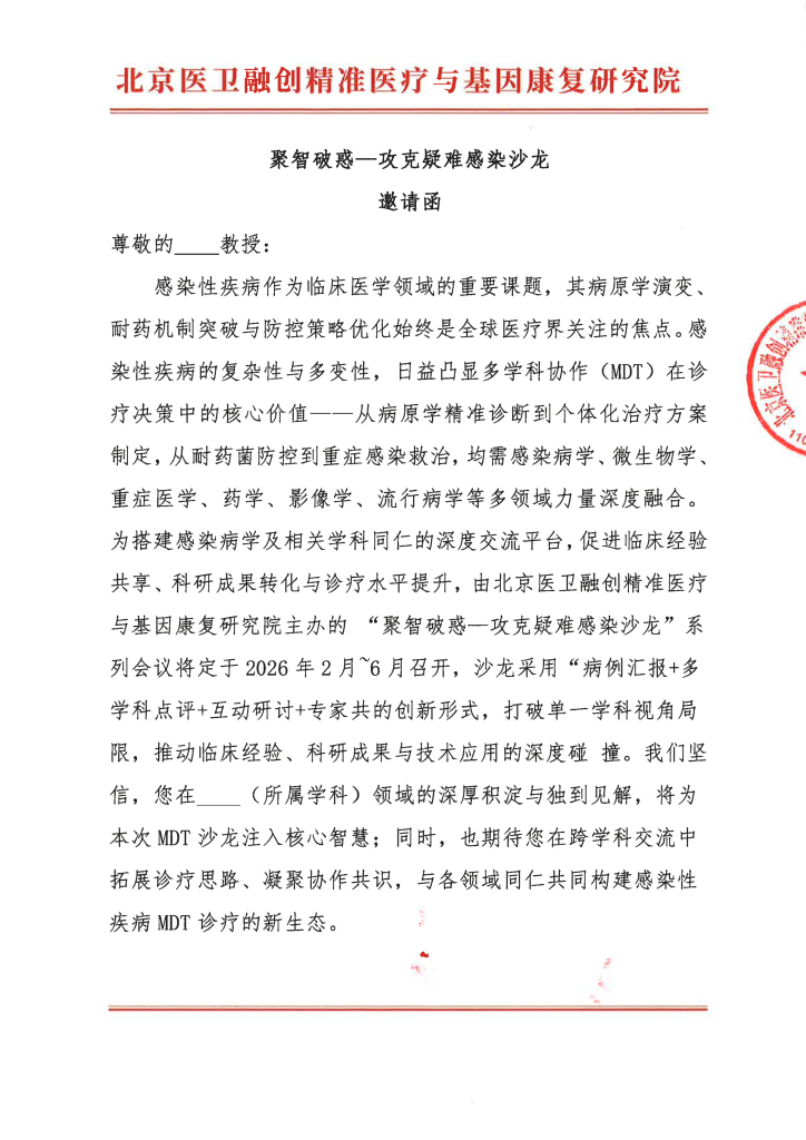 邀请函-聚智破惑—攻克疑难感染沙龙