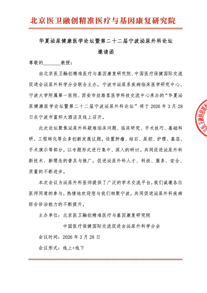邀请函-华夏泌尿健康医学论坛暨第二十二届宁波泌尿外科论坛